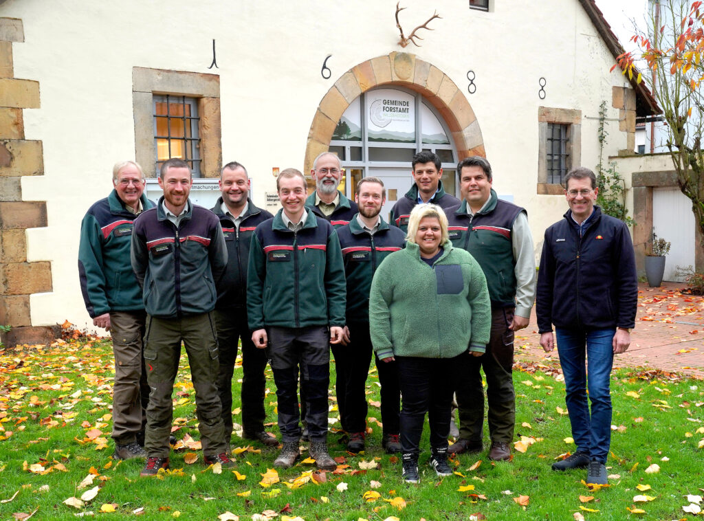 Das Team des Gemeindeforstamtsverbandes Willebadessen vor dem Forstamtsgebäude.